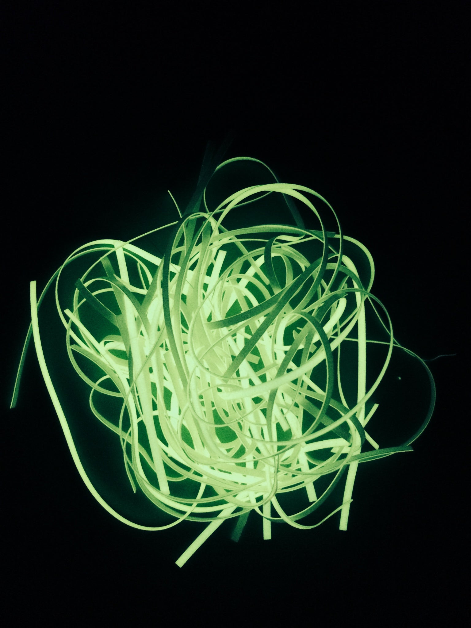 Hareline Atomic Glow 1/16 inch Strips - Stretchy material that when exposed to sunlight, UV light or a LED light source for 10 -15 mins resulting in a sustained glow for more than 8 hrs.